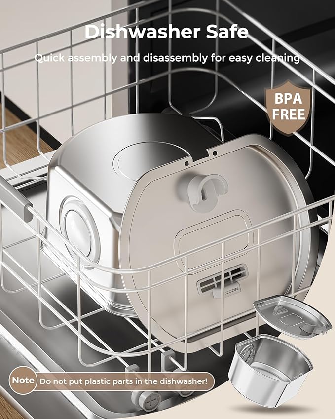 - Water Level Window & Stainless Steel: Our new design features a water level window, allowing you to effortlessly keep an eye on water levels without ever having to remove the cover of the cat fountain. Crafted from premium 304 stainless steel, it's not only corrosion-resistant but can also withstand high-temperature cleaning, ensuring your pet's health and safety