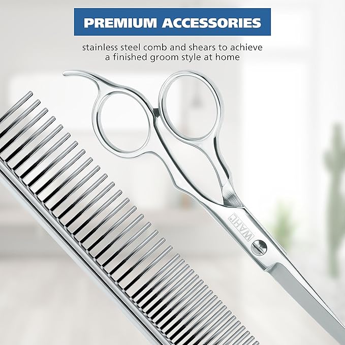- High Quality Accessories – Heavy duty stainless steel shears and detangling comb help you to complete the perfect well-groomed look for your pet, at home. Also while making it easier to groom your pet around the ears and face, where your pet may be more sensitive to noise.