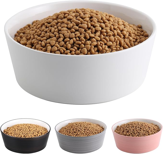 White Dog Bowl Ceramic for Medium Large Breed, Heavy Weighted Dog Food Water Dish, 8 in Non - Slip Modern Cute Extra Big Porcelain Pet Bowl Maze Wide Mouth