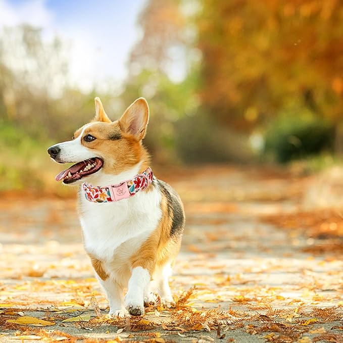 Elegant little tail Fall Dog Collar, Autumn Leaves Pet Collar Durable Dog Collars Male or Female Holiday Pet Gift Adjustable Dog Collar for Small Dogs