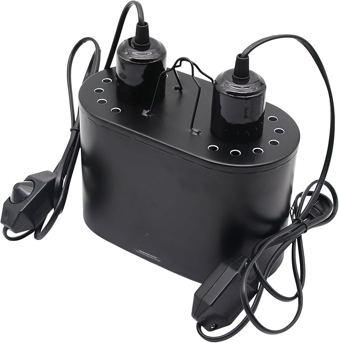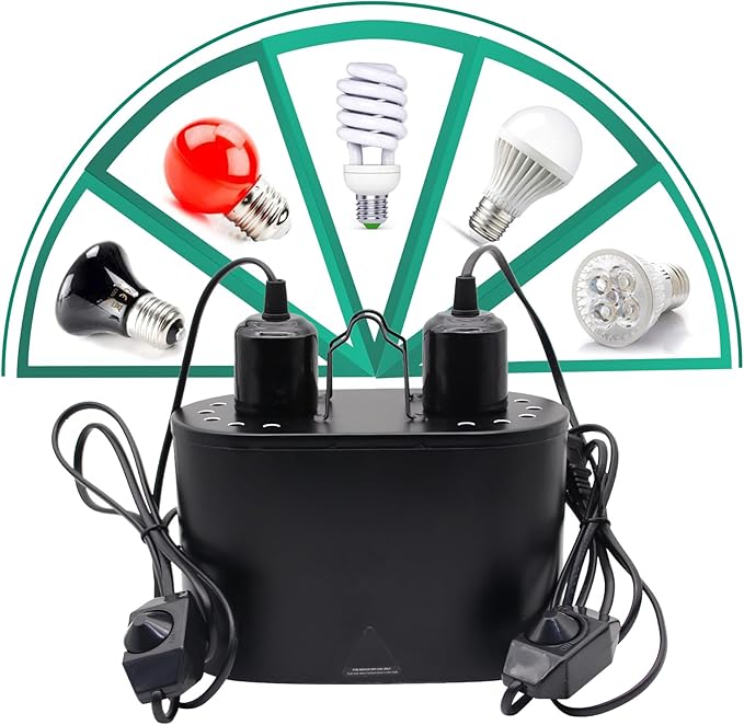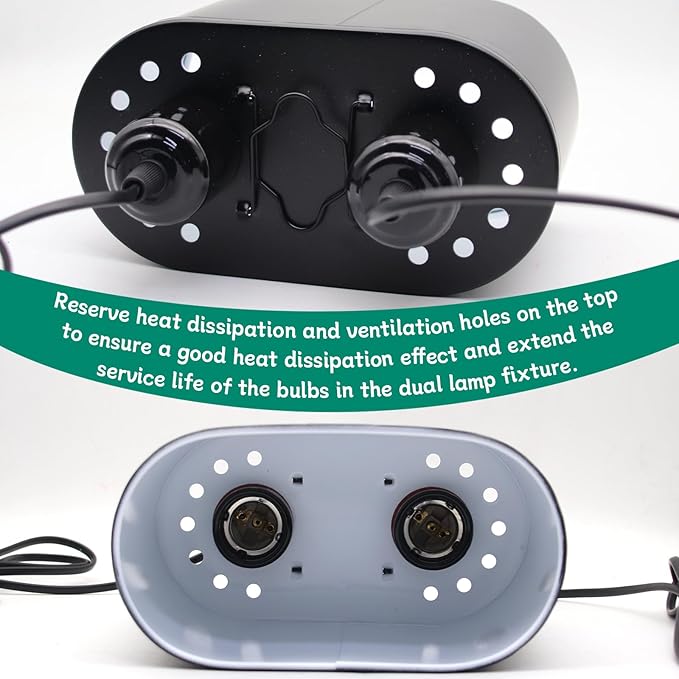 - Double lamp fixture integrated design: This dual reptile heat lamp can be equipped with 2 lamps, E27 lamp holder ,maximum load: 100W (each lamp holder), double lamp fixture design can meet your pet's light needs, suitable for reptile ceramic heat lamps, uvb uva basking spot lamp, uvb lamp, daylight lamps,nightlight lamp and infrared spot lamp etc.