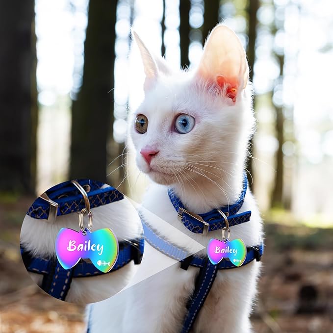 - Suitable Size: These bow tie shaped custom pet tags are 0.07" (1.8mm) thick, 1.54" (39mm) in length and 0.91"(23mm) in width for large size, recommend for pets over 40 lbs; 1.18" (30mm) in length and 0.71" (18mm) in width for small size, recommend for pets 40 lbs and under.