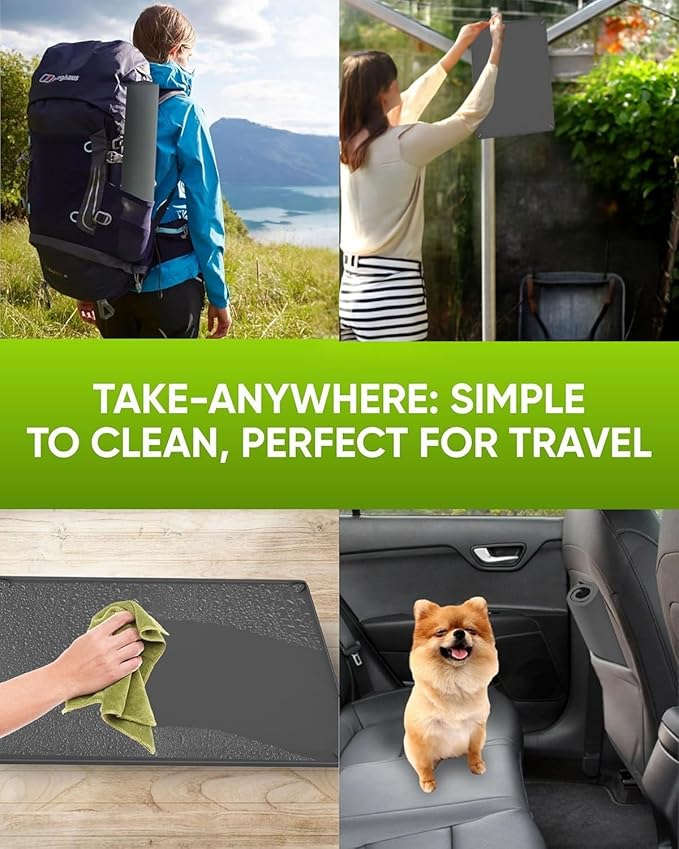 - [Portable and Travel-Friendly:] Our Pee Pads Holder is easy to roll up and store, making it perfect for travel. Whether you’re on vacation or visiting friends, its portability ensures you can maintain your pet’s routine anywhere.