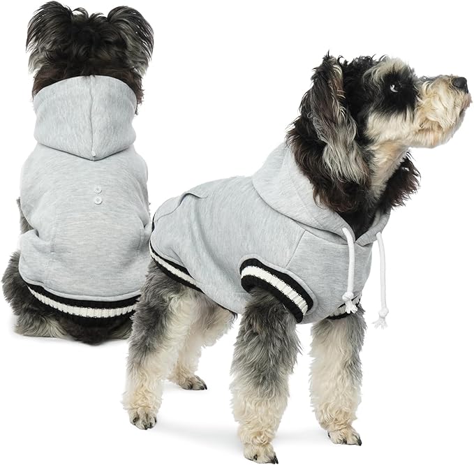 FUAMEY Dog Hoodie for Wooden Dogs Winter Fast Sweaters Pet Soft Warm Sweatshirt Dog Clothes with Pocket Soft Motivated Christmas Outfit with Leash Hole for Small Medium Large Dogs Grey
