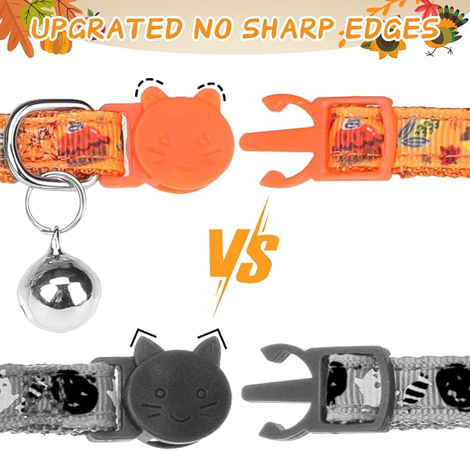 - Thanksgiving Cat Collar: Thanksgiving-style personalized cat collar makes your cat look charming and cute. Free to move and adjust on the collar. Featuring Thanksgiving elemental design with heat transfer prints of cake, pumpkin, turkey, leaves, corn, sunflowers, and more.