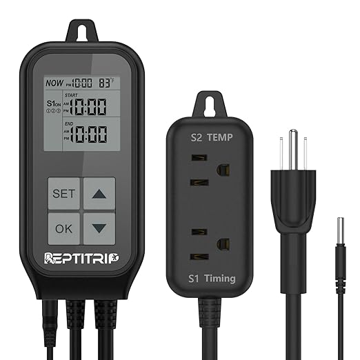Reptile Thermostat, Light Timer for Temperature and Lighting Control, Day-Night Timer Thermostat with Reptile Thermometer for UVB Light, Heat Lamp, Heating Pad, 10A 1250w