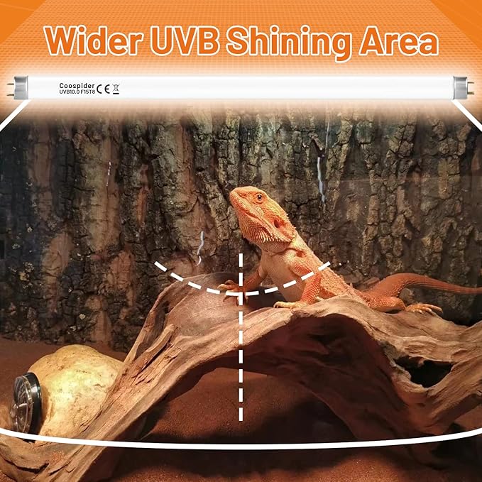 - 【10.0 UVB Light】The F15T8 lamp provides sufficient UVB light to promote calcium absorption in pets, promote appetite and avoid soft-shelled eggs.Enables your pet to grow up healthy.