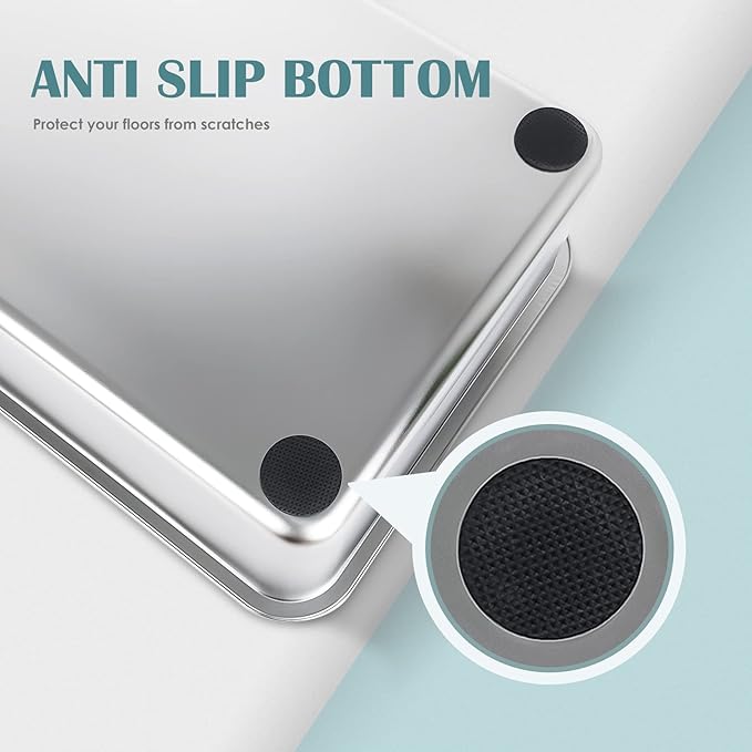 IKITCHEN Stainless Steel Cat Litter Box, Large Metal Litter Box for Cats, Never Absorbs Odors,Stain Free, Rustproof, Non Stick Smooth Surface, Anti-Slip Rubber Bottom, 19.5" L x 13.5" W x 4" H