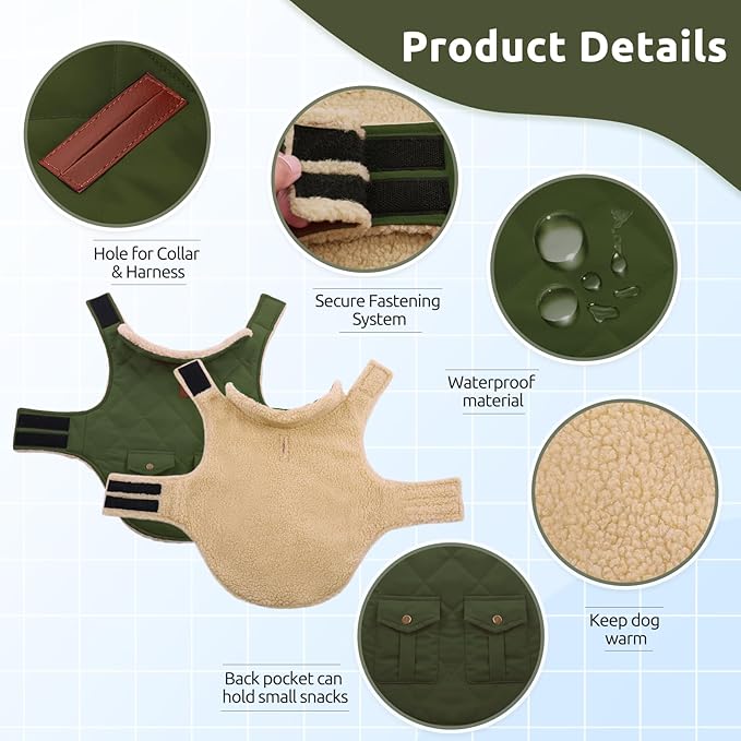 - 【Snowproof and Style】: Choosing a windproof and fashionable dog vest is not only a thoughtful gift, but also a great choice to show your pet's personality. It also creates a fun bonding experience for you and your pet