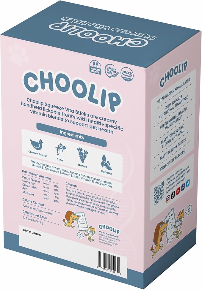 - VITAMIN INFUSED SOFT TREATS: Known as The Vet Who Bakes, Squeeze Vita Sticks were formulated by Korean Veterinarian Dr. Eric, for his cats and dogs. But after becoming popular on his blog, the recipes were upgraded to include health-specific vitamins, then packed into these dog and cat lickable treats