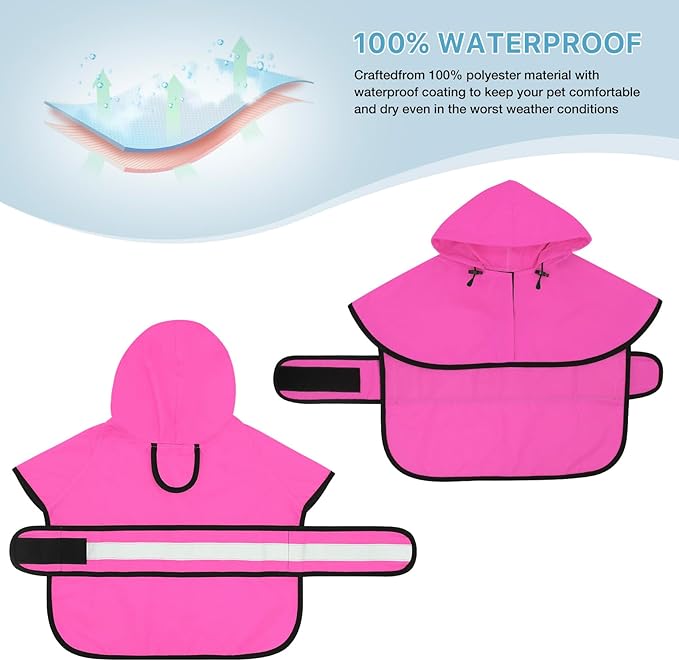 - 【WATERPROOF DOG RAINCOAT】This dog raincoat is made of waterproof fabric to keep your pet dry and warm when walking in the rain. It's lightweight and comfortable for your dog to wear all day long.