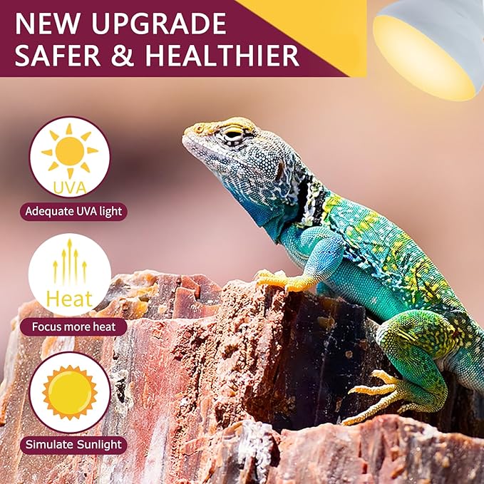 - Simulate Natural Sunlight - REPTI HOME reptile heat lamp bulbs can simulate natural sunlight, improve the overall air temperature of terrarium, and provide reptiles with closest natural environments, thereby solving the problem of reptiles that cannot regulate their body temperature by themselves.
