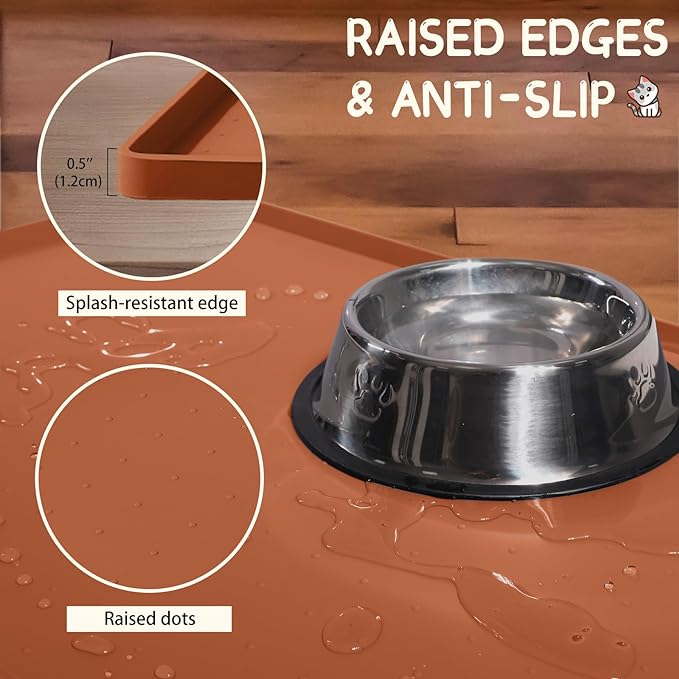 MateeyLife Silicone Cat & Dog Food Mat for Floors Waterproof, Anti-Slip Dog Bowl Mats for Food and Water, Pet Feeding Mats with Lip to Prevent Spills, Pet Placemat for Messy Drinkers to Protect Floors