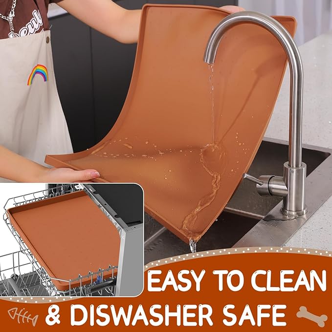 - Easy to Clean & Dishwasher Safe: You can fold the pet bowl mats for food and water to discard crumbs and rinse them down in a sink without deformation. Alternatively, the dog water matt for sloppy drinkers and dog matt for food and water bowl can be wiped down with a wet cloth. The pet water mat for dog bowl is also safe to clean in a dishwasher. If you have energetic pets, you can put the silicone pet food mats waterproof with edge under the pet food bowls every mealtime as they dry up quickly