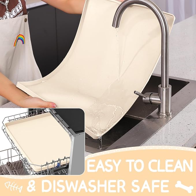 - Easy to Clean & Dishwasher Safe: You can fold the pet bowl mats for food and water to discard crumbs and rinse them down in a sink without deformation. Alternatively, the dog water matt for sloppy drinkers and dog matt for food and water bowl can be wiped down with a wet cloth. The pet water mat for dog bowl is also safe to clean in a dishwasher. If you have energetic pets, you can put the silicone pet food mats waterproof with edge under the pet food bowls every mealtime as they dry up quickly
