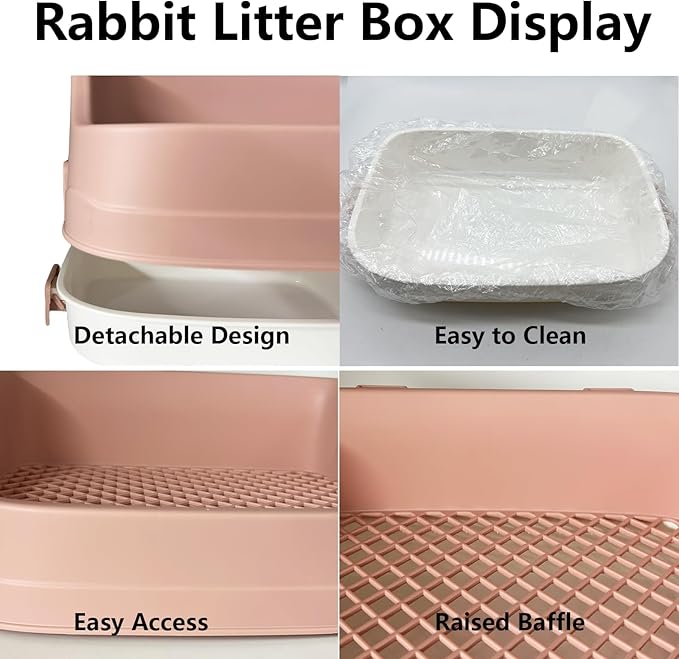 - 【Pet-Friendly Features for Easy Use】 With a low entrance design, Tfwadmx Rabbit Litter Box is designed to be easily accessible for your pets. They can enter and use rabbit litter box without any hassle. The higher baffle effectively prevents splashing, reducing the need for extensive cleaning. The large mesh ensures that your pet's feet won't get stuck, providing them with a comfortable and safe experience.