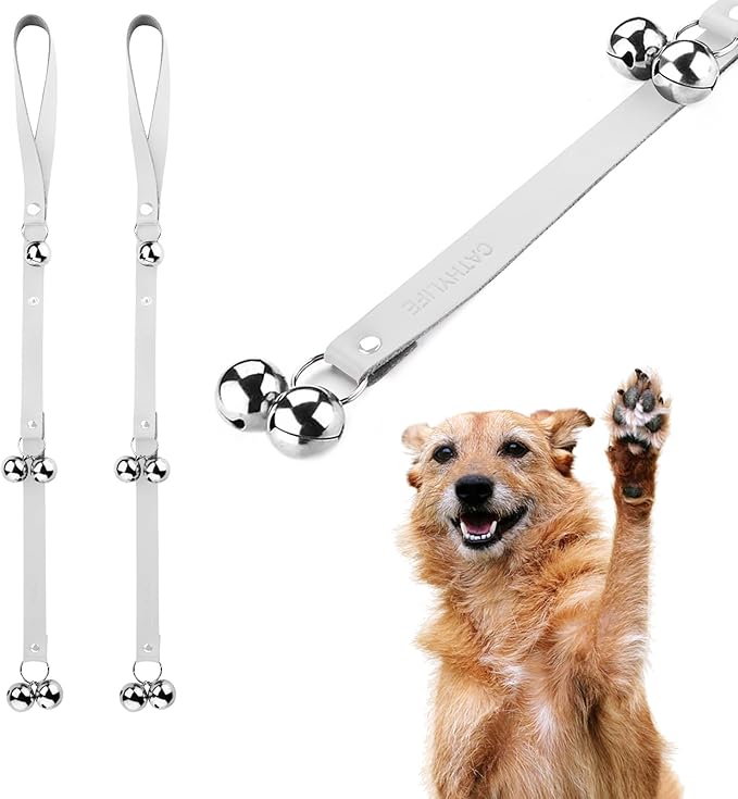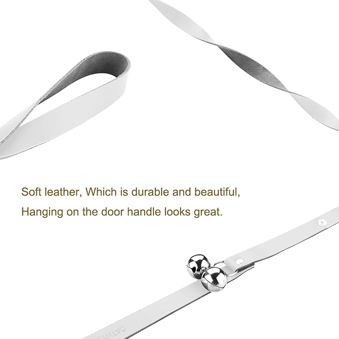 - If you do not want to install a dog door on your own door, this puppy bell will be a good choice, it is easy to use, just hang on the doorknob to start interaction with your puppy. Beautiful leather and bell can also serve as a nice decoration, if hanging the bell on the door handle causes inconvenience, you can buy our hook - B08RY66WD2, stick it in a suitable location to hang the bell.