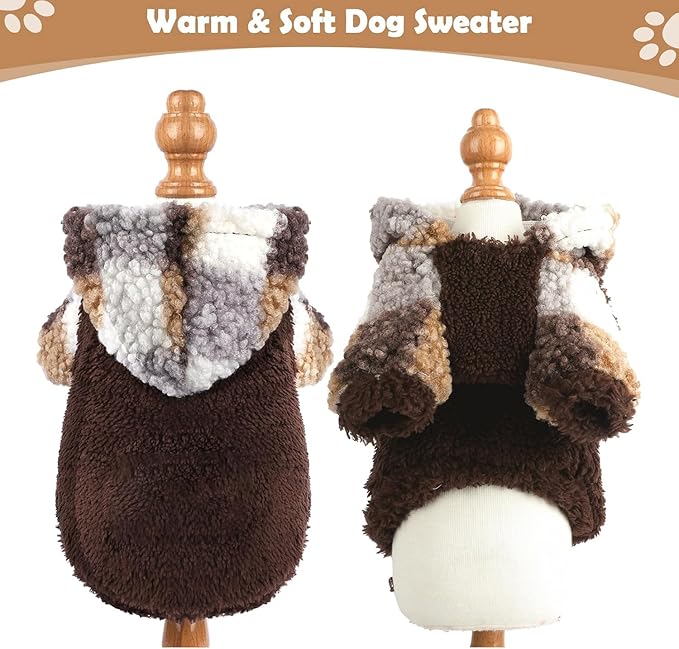 Dog Sweaters for Small Dogs Girl Fleece Dog Hoodie Winter Puppy Sweater (Plaid Brown, XX-Small)