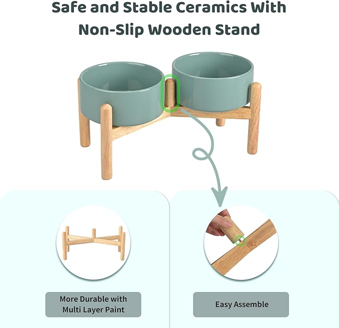 - Stable Wooden Stand:Heavier ceramic bowl with stable,Multi-Layer paint wooden structure prevents bowls from being knocked over while pets eating