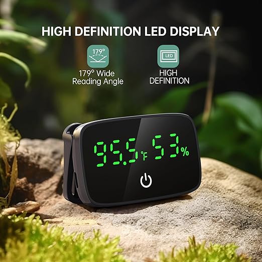 - LED High Definition Display: This digital thermo-hygrometer from PAIZOO has an easy to read LED display for simple and accurate temperature and humidity readings in your reptile tank even at night. Touch to display temperature and humidity and enter sleep mode after fifteen seconds, long press to toggle ℉/℃ display