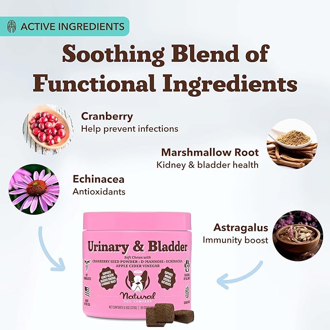 - OPTIMAL BLADDER HEALTH: Ensure your pet’s comfort and happiness with our Urinary and Bladder Soft Chews. These chews provide superior bladder control for dogs and support the entire urinary tract for dogs, helping to reduce discomfort and improve daily life. Trust in our natural formula to keep your dog's bladder health in check and their spirits high.