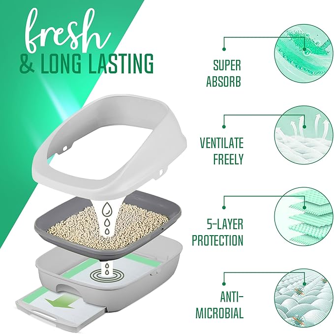 PETSWORLD Multi Cat Pad Refills for Cats Breeze Litter System, Ultra-Absorbent, Quick Dry - (1200 Count, Unscented)