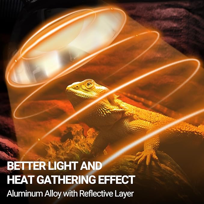 - 【Excellent Spotlight Effect】: The high-efficiency reflective lampshade is made of aluminum alloy material, which has better focusing and heating effects, significantly improving the output of UVA and UVB.