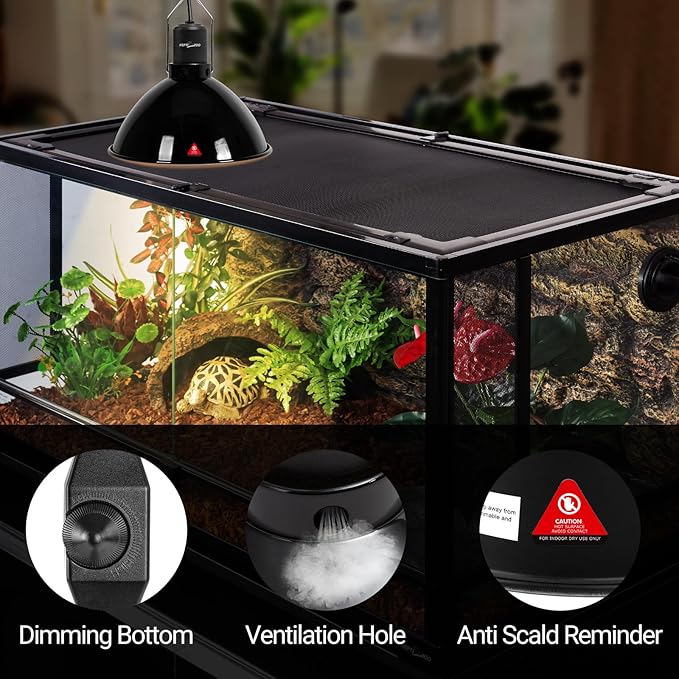 - 【Dimmable Design】: REPTI ZOO Reptile Dimmable Deep Dome Lamp Fixture is a good helper for reptile lighting. It can flexibly adjust the brightness/heat according to the needs of reptiles, always maintaining a comfortable living environment.