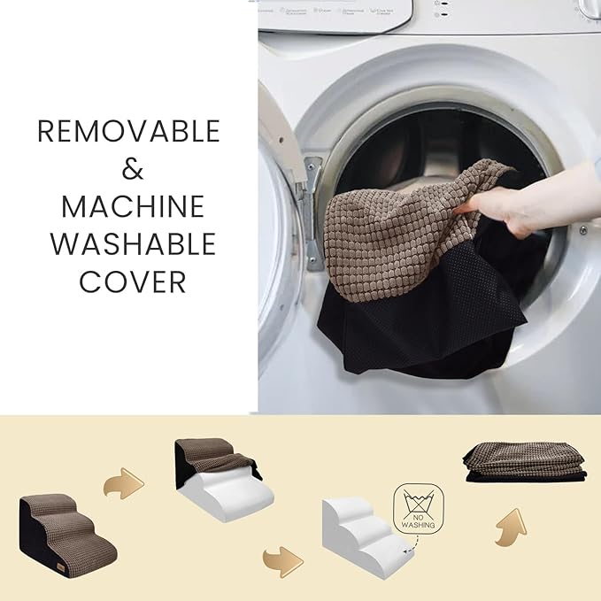 - Easy to Care: Our dog stairs are designed with a zip which makes it easy and convenient to put the cover on and take it off. Machine wash and tumble dry the pet stairs cover to give your pet a comfortable and clean pet steps.