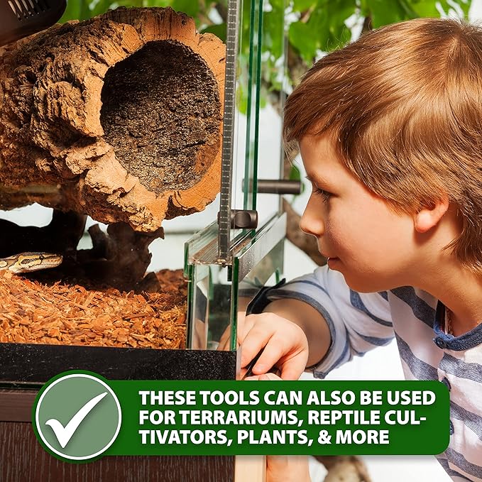 - Comfortable to Grip & Easy to Clean: The rainbow terrarium tools set include long tweezers for terrarium for accurate feeding and terrarium scissors for trimming bonsai, succulents, reptile enclosures, snake reptile cultivators, and indoor gardens.