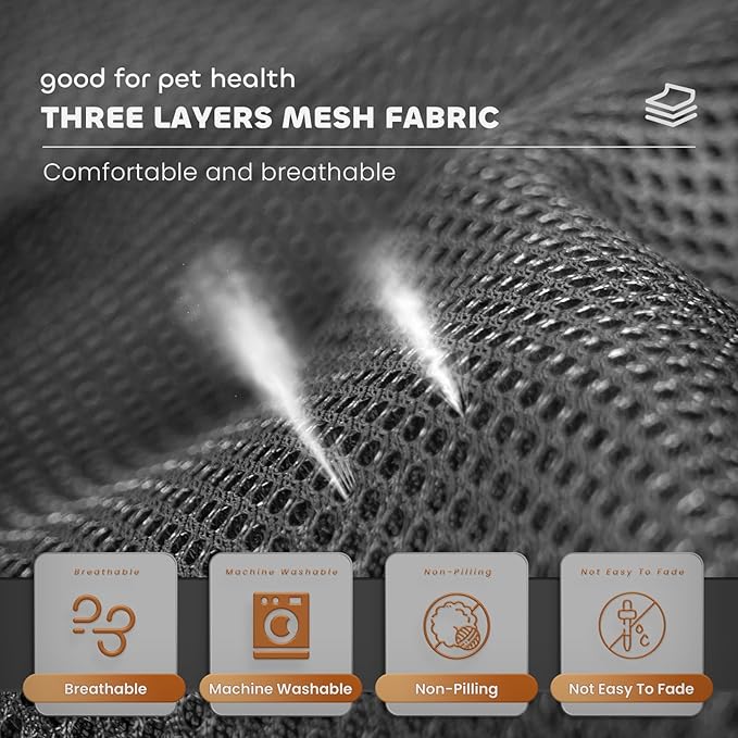 - [High Versatility] Three layers of synthetic mesh fiber fabric keep pets cool and comfortable. Large enough to keep pets away from hot, cold, or dirty floors while resting or sleeping. The bed features a sturdy and durable design that is easy to move and suitable for daily use both indoors and outdoors.