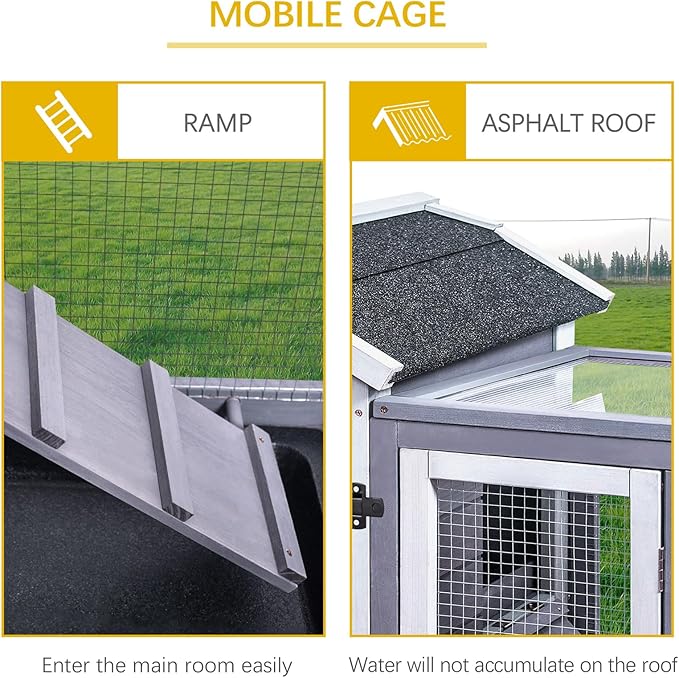 - 🐇【Ultimate Security】- Our wooden rabbit cage boasts a sturdy metal wire mesh that ensures ventilation and keeps your pets safe from predators. No more worries about escapes; this hutch is designed to provide security and easy interaction with your furry companions.