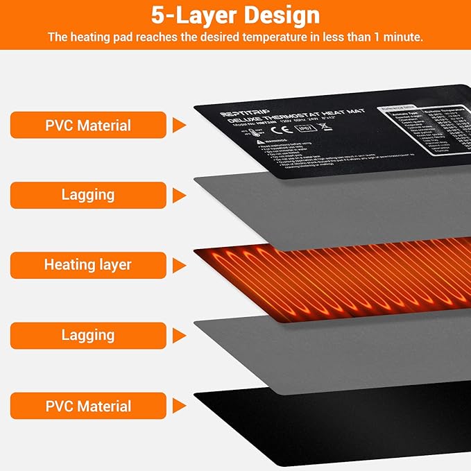 - FAST Heating: The reptile heating pad has 24 watts of power! With 8 more watts than other heating pads of this size on the market, it heats to 113°F/45°C in 1 minute.