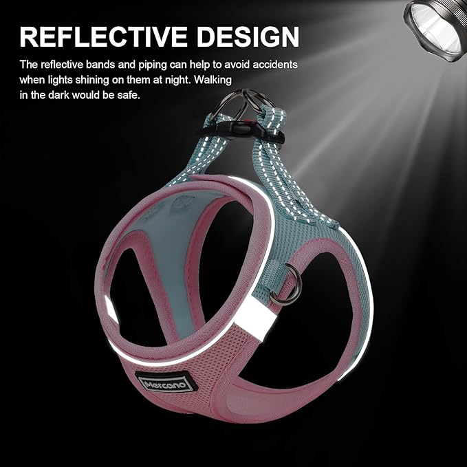 Mercano Soft Mesh Dog Harness and Leash Set, No-Chock Step-in Reflective Breathable Lightweight Easy Walk Vest Harnesses with Safety Buckle for Small Dogs, Cats (XXS, Pink Blue)