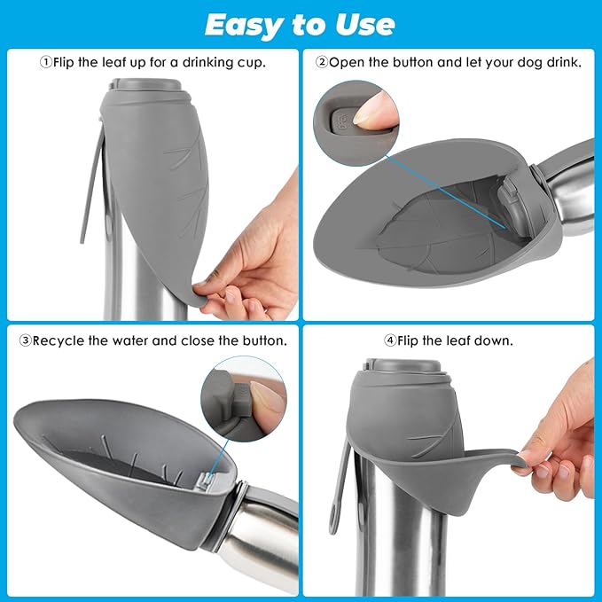 - Leak-proof: The dogs travel water bottle adopts upgraded silicone seal ring to effectively prevent water leakage, great for your dogs outdoor walking, running, hiking, traveling or playing