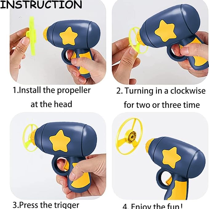 - Easy to play & aim: First install the propeller, turn it clockwise 3-6 times, aim, and pull the trigger to launch, your cat will have great fun with this fetch toy. Please don't rotation the discs excessively, otherwise it will affect the service life of the toy. Supervise pets during play to avoid ingestion of small parts and replace broken toys timely