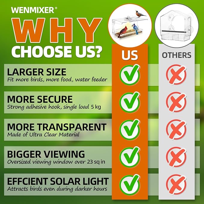 - CLOSE BIRD WATCHING : Experience the thrill of close bird watching and wild bird viewing with our exceptional window bird feeder. Made with super clear plastic materials, it provides an unparalleled view of your feathered visitors, bringing nature right to your window.