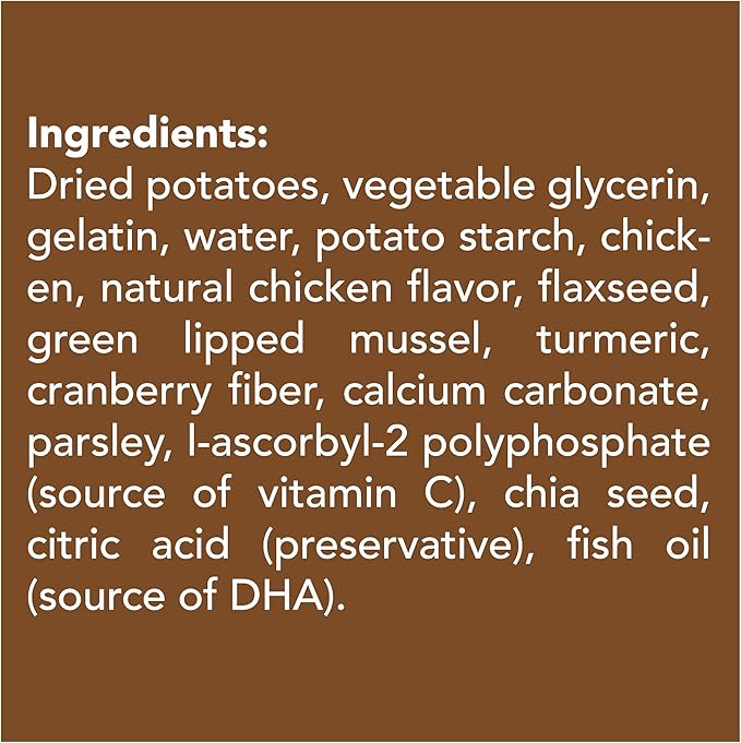 - Added calcium and green-lipped mussel to support your pal's teeth, anti-flammatory, and cartilage support.
