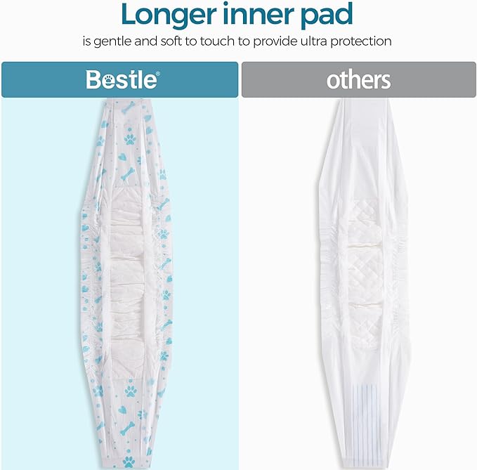 - High-Quality Material: Crafted with superior fluffy pulp, soft non-woven fabric and a breathable PE film,,these diapers provide a gentle touch and ensure the hygiene and comfort of your dog. Doggie diapers offer maximum absorbency and let your dog play with joy and freedom