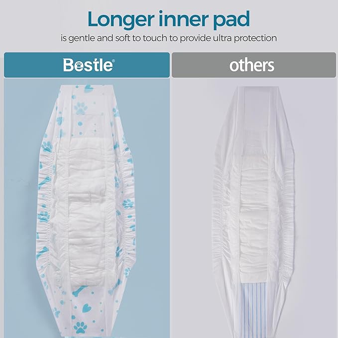 - High-Quality Material: Crafted with superior fluffy pulp, soft non-woven fabric and a breathable PE film,,these diapers provide a gentle touch and ensure the hygiene and comfort of your dog. Doggie diapers offer maximum absorbency and let your dog play with joy and freedom