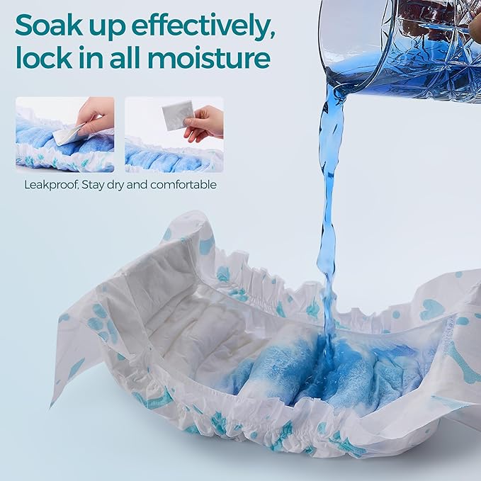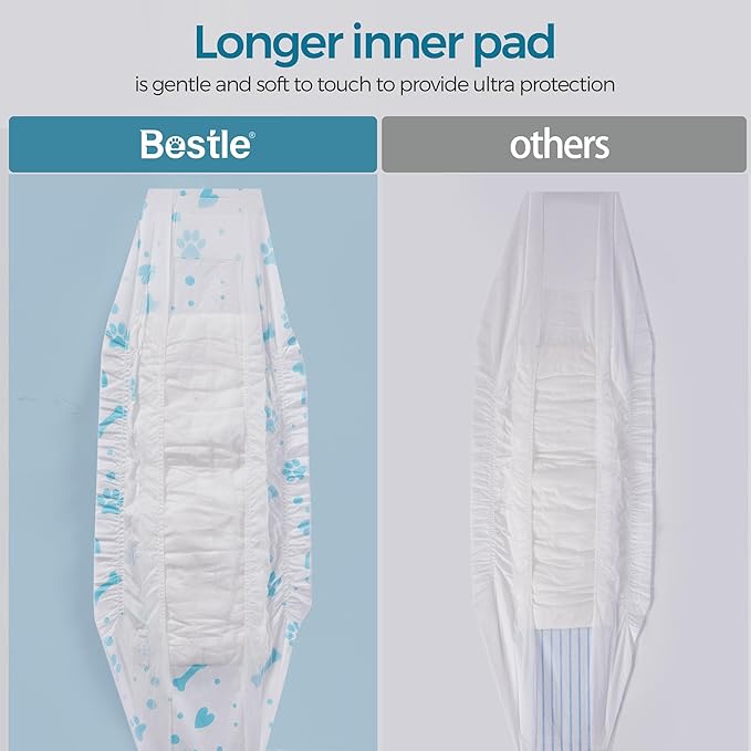 - High-Quality Material: Crafted with superior fluffy pulp, soft non-woven fabric and a breathable PE film,,these diapers provide a gentle touch and ensure the hygiene and comfort of your dog. Doggie diapers offer maximum absorbency and let your dog play with joy and freedom