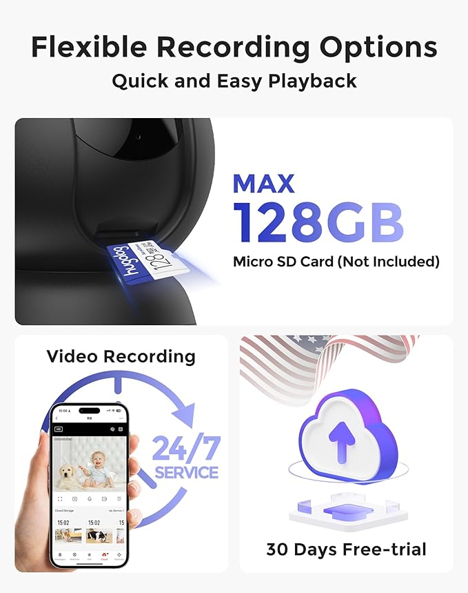 - US Cloud Storage & SD Card Storage: The indoor security camera supports encrypted cloud storage in the US and a built-in microSD slot up to 128GB; ensuring your high-quality 3K day and night color footage is safely stored locally or in the cloud