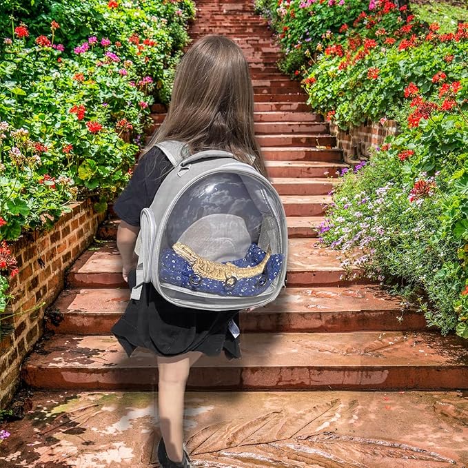 Guinea Pig Backpack Carrier, Reptile Outdoor Used,Bearded Dragon Carrier Backpack with Clear Bubble Window,Small Animal Travel Backpack for Hedgehog Rat Parrot, Airline Approved (Grey, Backpack)