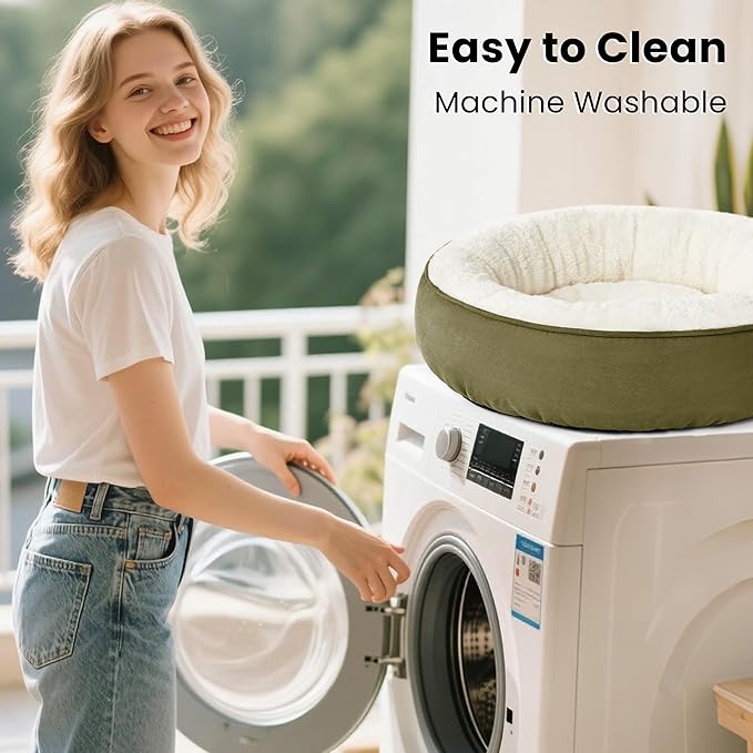 Love's cabin Round Donut Cat and Dog Cushion Bed, 25in Pet Bed for Small or Medium Dogs, Anti-Slip & Water-Resistant Bottom, Soft Durable Fabric Pet Beds, Washable Calming Cat & Dog Bed Olive Green