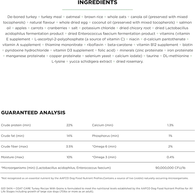 Go! Solutions Skin + Coat Care, Dry Dog Food, Turkey Recipe with Grains, 22 lb Bag