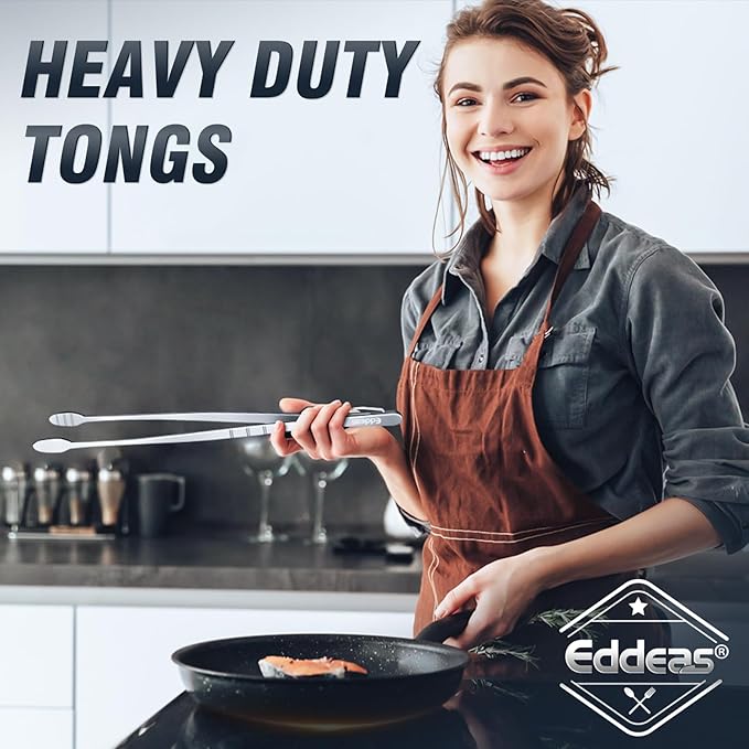 - ☆【FOOD GRADE STAINLESS STEEL】Eddeas kitchen tweezers are made of high quality food grade stainless steel, resistant to rust and corrosion, non-toxic, uncoated. Dishwasher safe. The thickened kitchen tweezers are very sturdy, tough. while remaining lightweight and easy to handle!