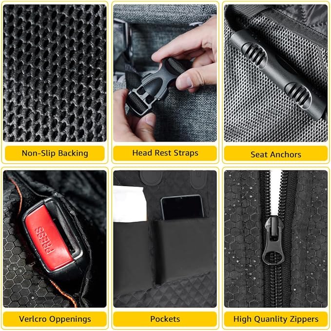 - 🐾[Comfortable and Pet-friendly Design] : The seat cover features a mesh visual window for better air circulation and reduced anxiety for your pet, while the extra storage pockets allow you to store pet food and toys, ensuring a comfortable and enjoyable travel experience.