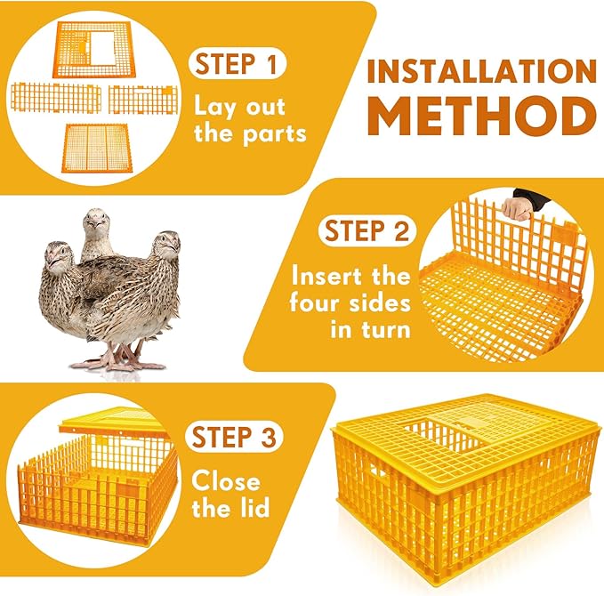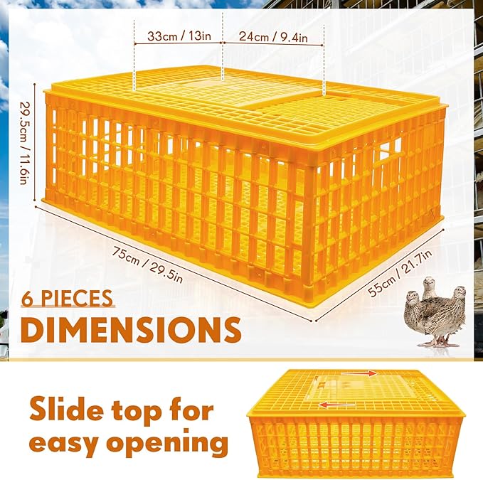 - Spacious Size: measuring at about 29.5 x 21.7 x 11.6 inches/ 75 x 55 x 29.5 cm, the transport crate provides abundant space for poultry to rest; The size of the transport crate is large enough to accommodate various types of birds, adding to its versatility and universal application