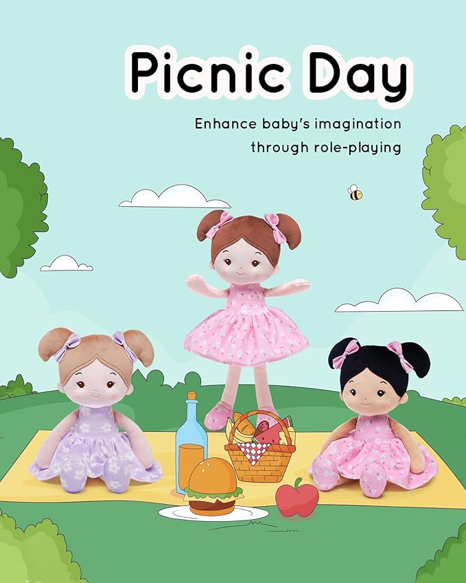 Soft Baby Doll Toys (12''), My First Baby Rag Doll for 1 Year-Old Girl Birthday Gift, Leya Doll Christmas Plush Toys Gift for Toddler Kids Infants -FloraBelle(Purple)
