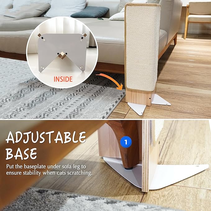- CORNER SCRATCHER: Suit for the corner of wall and furniture. Upgraded adhesive velcro ensures it won't fall down when cat scratching.